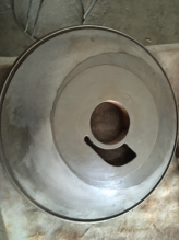 (5)剪裁制作表面積大于隔板端面******直徑的0.5mm厚度不銹鋼帶,以葉輪外徑尺寸為基準沖裁內(nèi)孔。不銹鋼帶平面度±0.10mm。